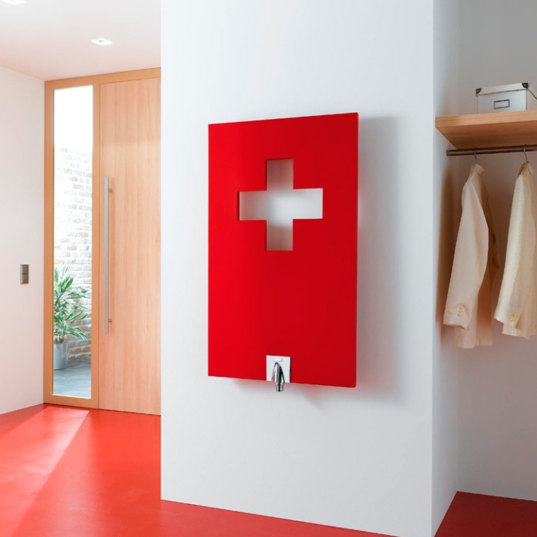 Дизайнерский радиатор Arbonia Flagtherm — воплощение истинно швейцарского качества, видного с первого взгляда. Стилизованный под швейцарский флаг, с вырезом в форме креста, он демонстрирует выверенную прямолинейность и четкость прямоугольных форм. Такой дизайнерский радиатор вполне может стать истинным украшением фойе престижного отеля, офиса солидного предприятия или же личного жилья оригинального дизайна. По запросу вставка (устанавливается в вырез на корпусе) может быть выполнена из зеркальной тонкополированной стали или же с окраской в устраивающий вас оттенок. Этот стильный прибор оснащен удачно замаскированным клапаном и такой же незаметной конструкцией для выполнения подключений. Радиатор Flagtherm покрывается алюминием высочайшего качества (RAL 9006) белого цвета.