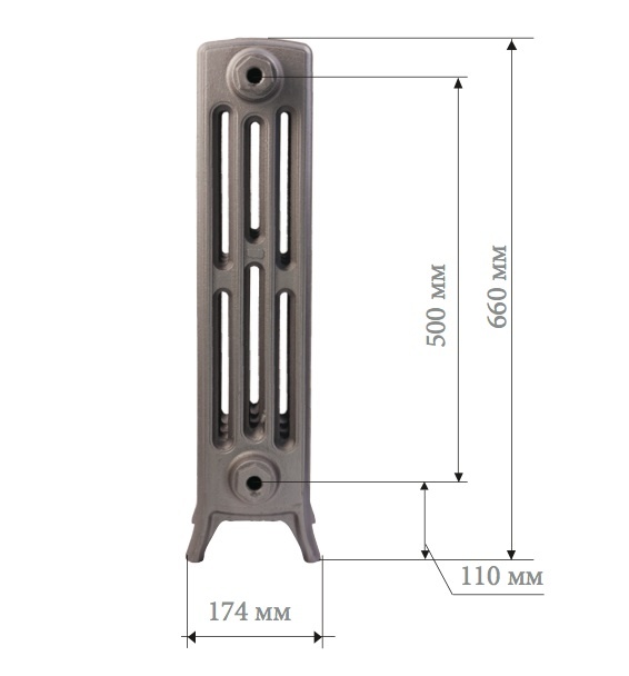 Все данные размеров радиаторов являются приблизительным, так как в литье допустимы небольшие отклонения, поэтому мы рекомендуем производить вывод и подключение труб только при наличии радиаторов на стройплощадке.