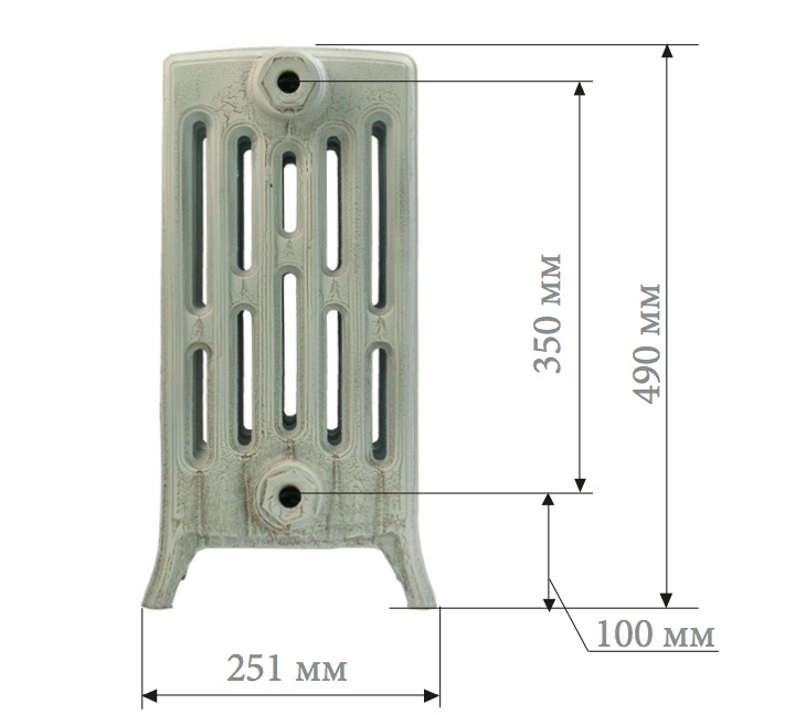 Все данные размеров радиаторов являются приблизительным, так как в литье допустимы небольшие отклонения, поэтому мы рекомендуем производить вывод и подключение труб только при наличии радиаторов на стройплощадке.