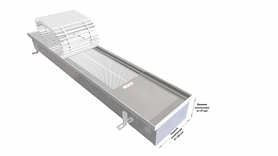 Конвектор модели EVA K предназначен для отопления сухих помещений и имеет небольшую тепловую мощность при углублении в пол (высота стяжки) 97 мм. Модель EVA K без вентилятора. Короб конвектора выполнен из нержавеющей стали.