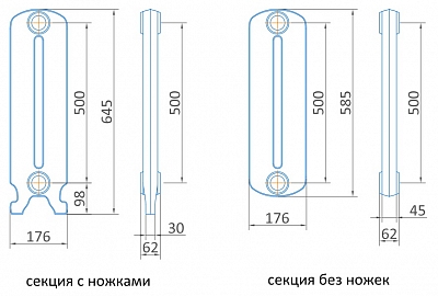 Все данные размеров радиаторов являются приблизительным, так как в литье допустимы небольшие отклонения, поэтому мы рекомендуем производить вывод и подключение труб только при наличии радиаторов на стройплощадке.