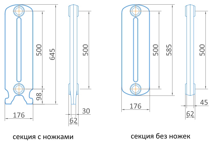 Все данные размеров радиаторов являются приблизительным, так как в литье допустимы небольшие отклонения, поэтому мы рекомендуем производить вывод и подключение труб только при наличии радиаторов на стройплощадке.