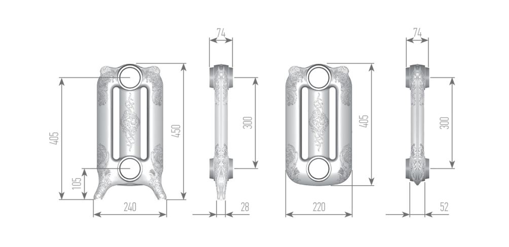 Все данные размеров радиаторов являются приблизительным, так как в литье допустимы небольшие отклонения, поэтому мы рекомендуем производить вывод и подключение труб только при наличии радиаторов на стройплощадке.