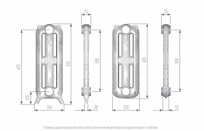 Все данные размеров радиаторов являются приблизительным, так как в литье допустимы небольшие отклонения, поэтому мы рекомендуем производить вывод и подключение труб только при наличии радиаторов на стройплощадке.