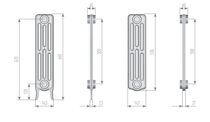 Чугунный радиатор с ненавязчивым дизайном, который легко впишется в любой интерьер. Благодаря простому исполнению его можно поставить в квартирах, домах, а так же в зданиях общего назначения. Чугунный радиатор прекрасно сочетает в себе строгие, топовые и практичные качества. Альтернатива массивным радиаторам: простые геометрические линии и незамысловатые формы полностью отражают воплощение индустриального минимализма. Этот традиционный чугунный радиатор используется повсеместно и доступен в диапазоне высот – 500 и 600мм.