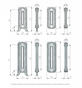 Все данные размеров радиаторов являются приблизительным, так как в литье допустимы небольшие отклонения, поэтому мы рекомендуем производить вывод и подключение труб только при наличии радиаторов на стройплощадке.Внимание! Длина радиатора указана без учета переходников.