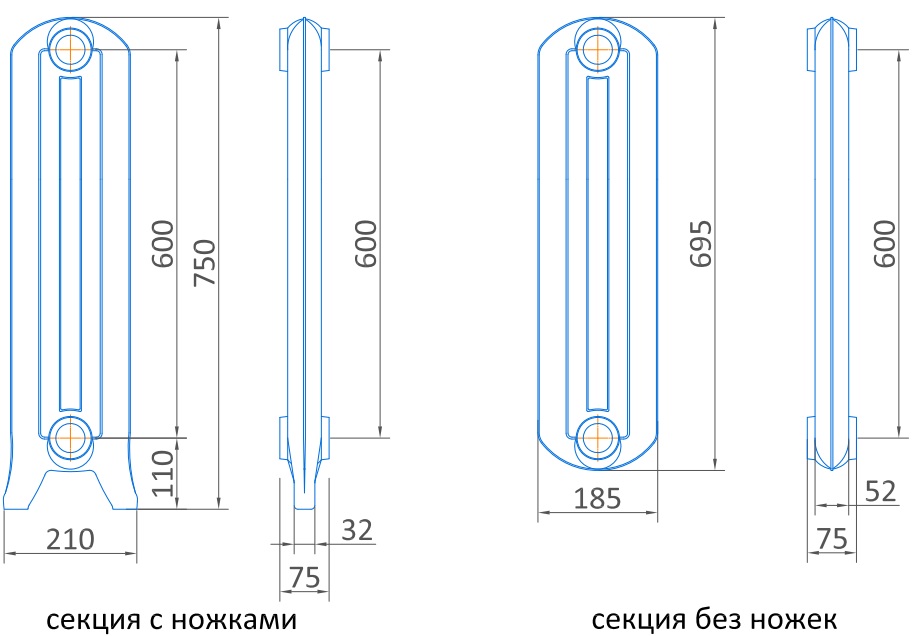 Все данные размеров радиаторов являются приблизительным, так как в литье допустимы небольшие отклонения, поэтому мы рекомендуем производить вывод и подключение труб только при наличии радиаторов на стройплощадке.