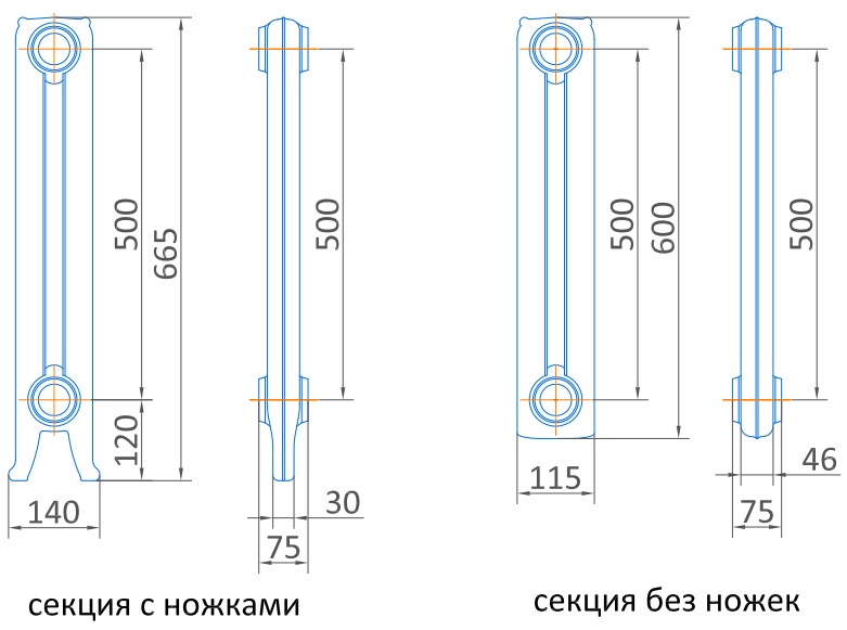 Все данные размеров радиаторов являются приблизительным, так как в литье допустимы небольшие отклонения, поэтому мы рекомендуем производить вывод и подключение труб только при наличии радиаторов на стройплощадке. Внимание! Длина радиатора указана без учета переходников.