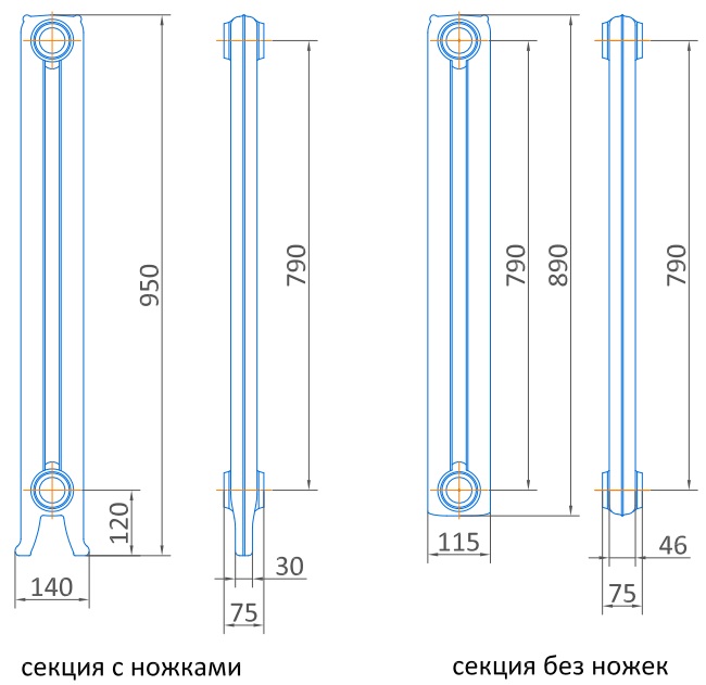 Все данные размеров радиаторов являются приблизительным, так как в литье допустимы небольшие отклонения, поэтому мы рекомендуем производить вывод и подключение труб только при наличии радиаторов на стройплощадке. Внимание! Длина радиатора указана без учета переходников.