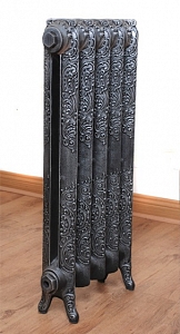 Чугунные радиаторы Rococo созданы во Франции в 1917 году. Это самый узкий радиатор в коллекции. На боковых поверхностях этих эксклюзивных чугунных ретро-радиаторов методом художественного литья запечатлен причудливый узор в венецианском стиле, что придает радиатору оригинальный внешний вид и имеет эксклюзивное дизайнерское решение. Данная модель чугунного радиатора, соединяет в себе концепцию классики. Изысканный рельефный рисунок, в сочетании с миниатюрными декоративными ушками, превращают изделие из обычного радиатора в украшение дома. Эта модель отличается особо малыми габаритами, поэтому ее можно устанавливать даже в небольших помещениях. У чугунных радиаторов самый большой срок эксплуатации - более 50 лет! Именно эти характеристики делают чугунные радиаторы прекрасным решением для организации систем отопления в домах, офисах и квартирах.