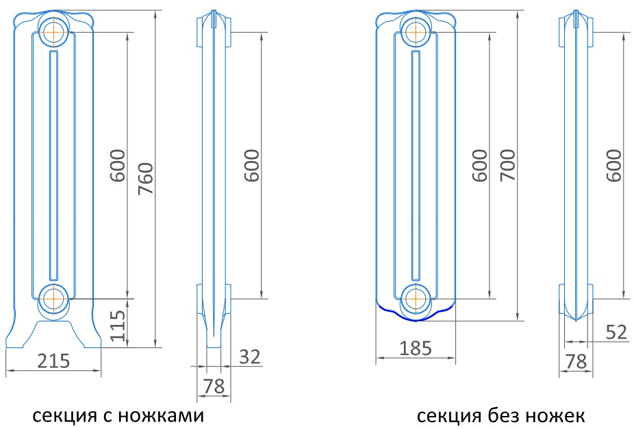 Все данные размеров радиаторов являются приблизительным, так как в литье допустимы небольшие отклонения, поэтому мы рекомендуем производить вывод и подключение труб только при наличии радиаторов на стройплощадке.