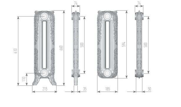Радиатор EXEMET Romantica – воплощение величественной роскоши, топовый орнамент, сдержанные формы и демократичная цена делают этот радиатор самым распространенным. Изготавливаются данные радиаторы методом художественного литья. Их можно встретить не только в загородных домах, но и в городских квартирах, офисах, а также в банях и саунах. Тепло, которое исходит от чугунных радиаторов, не сушит воздух, что является гораздо полезнее для человека, в отличие от других современных типов отопительных приборов. За его аристократичностью кроется надежность и невероятная работоспособность. Высокая теплоотдача и увеличенная площадь поверхности радиаторов отлично справятся с обогревом. За основу взяты модели радиаторов конца 18-го – начала 19-го веков. Гармонично сочетают в себе традиционную надежность и долговечность чугуна с классическим и элегантным дизайном. Благодаря своей популярности данная модель представлена в различных типоразмерах – 350 и 600мм.