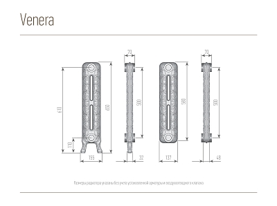Все данные размеров радиаторов являются приблизительным, так как в литье допустимы небольшие отклонения, поэтому мы рекомендуем производить вывод и подключение труб только при наличии радиаторов на стройплощадке.