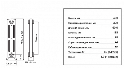 Максимальное количество секций в данной серии - 18 секции. Радиаторы Demir Dokum изготавливаются с использованием традиционного метода литья серого чугуна, это в свою очередь гарантирует длительный срок эксплуатации отопительных приборов.