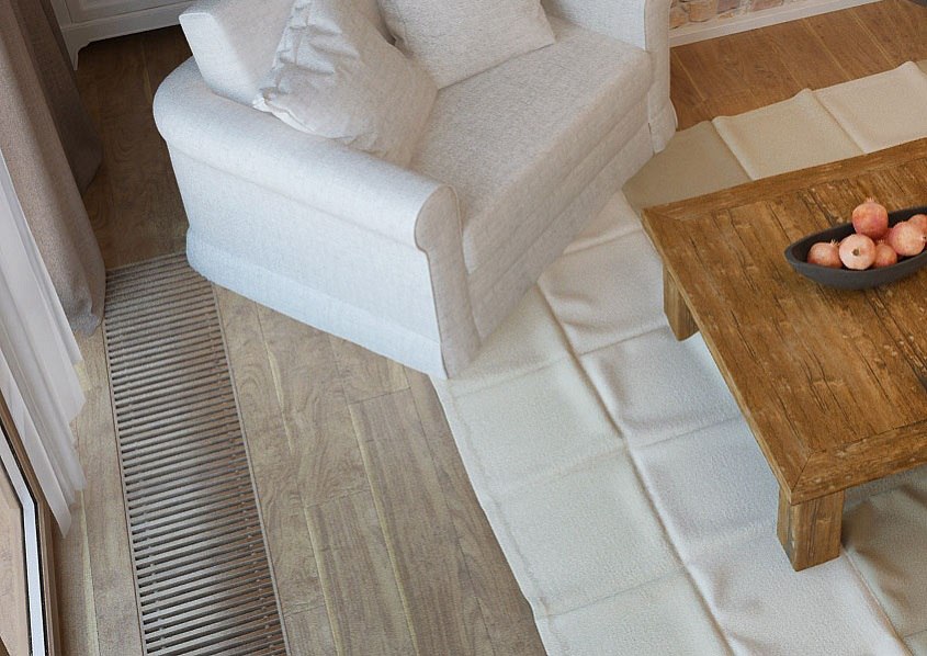 Небольшая высота конвекторов серии ITT (8см, 9см, 11см, 14см, 19см) позволяет монтировать их в пол малой глубины. Данные конвекторы целесообразно располагать у окон с большой стеклянной поверхностью.