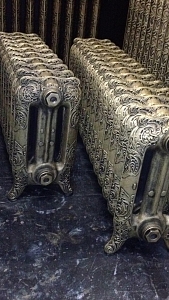 Некоторые модели чугунных радиаторов Floreal имеют не только однотонную структуру, но и дополнительный металлически-золотой орнамент. Уникальность стиля и роскошь конструкции выводит батареи на новый уровень, поэтому они находят свое применение в интерьерах ресторанов, кафе, отелей и загородных комплексов.