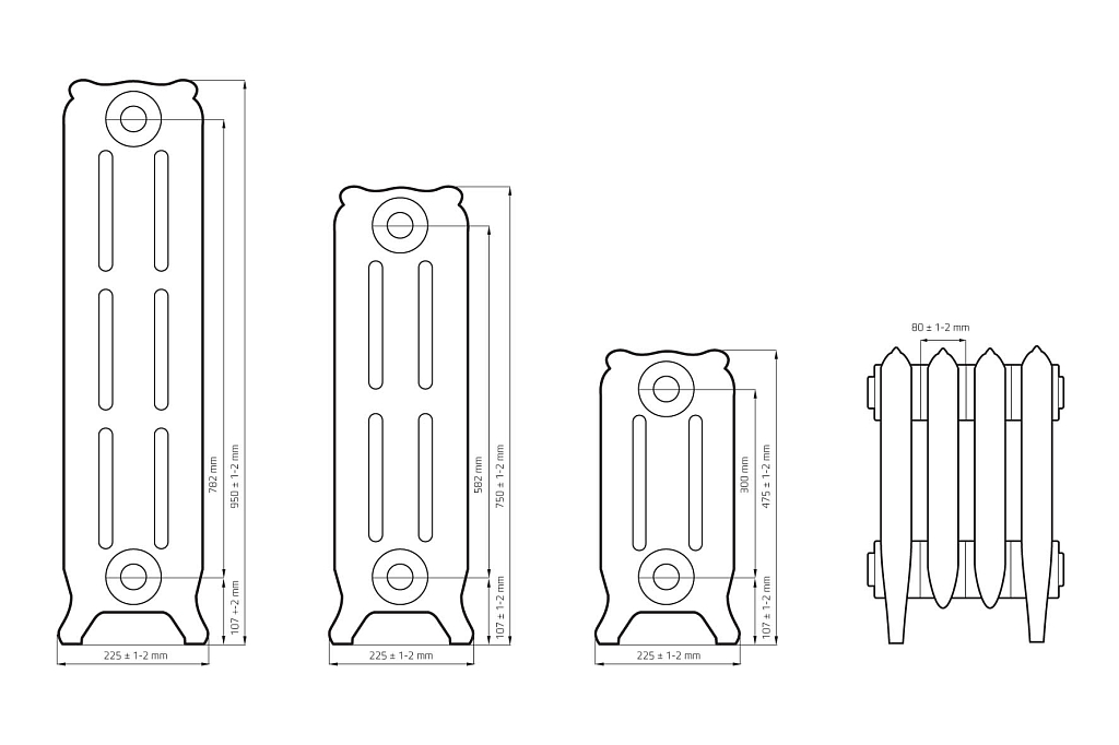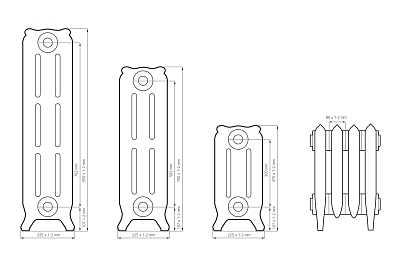 Все данные размеров радиаторов являются приблизительным, так как в литье допустимы небольшие отклонения, поэтому мы рекомендуем производить вывод и подключение труб только при наличии радиаторов на стройплощадке.
