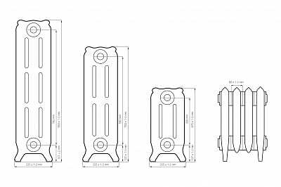 Все данные размеров радиаторов являются приблизительным, так как в литье допустимы небольшие отклонения, поэтому мы рекомендуем производить вывод и подключение труб только при наличии радиаторов на стройплощадке.
