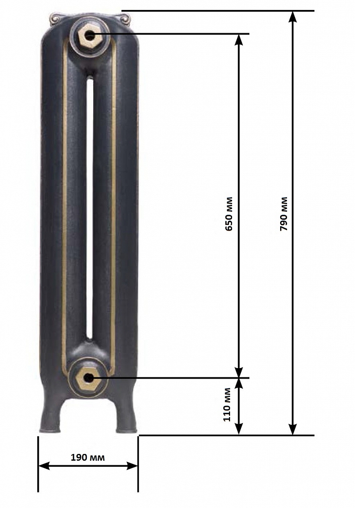 Все данные размеров радиаторов являются приблизительным, так как в литье допустимы небольшие отклонения, поэтому мы рекомендуем производить вывод и подключение труб только при наличии радиаторов на стройплощадке.
