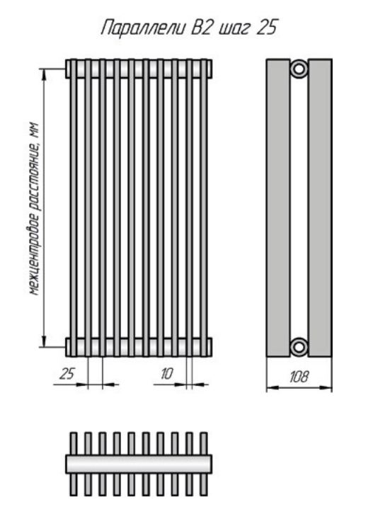 Радиаторы Параллели выпускаются в вертикальном и горизонтальном исполнении, а диапазон монтажной высоты составляет от 300 до 2000 мм. Базовый цвет радиатора — белый глянцевый RAL 9016. Выбрать любой другой цвет можно по каталогу RAL (наценка +20%).