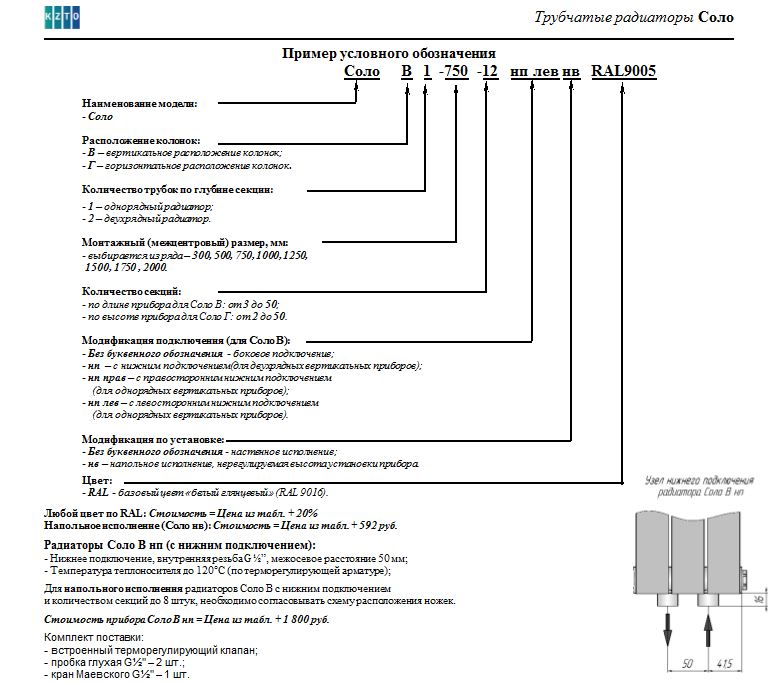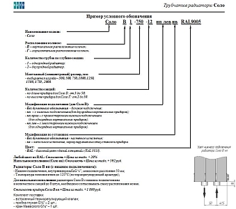 Радиаторы СОЛО выпускаются в вертикальном и горизонтальном исполнении, а диапазон монтажной высоты составляет от 300 до 2000 мм. Базовый цвет радиатора — белый глянцевый RAL 9016. Выбрать любой другой цвет можно по каталогу RAL (наценка +20%).