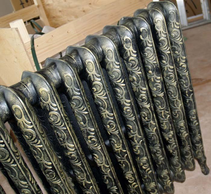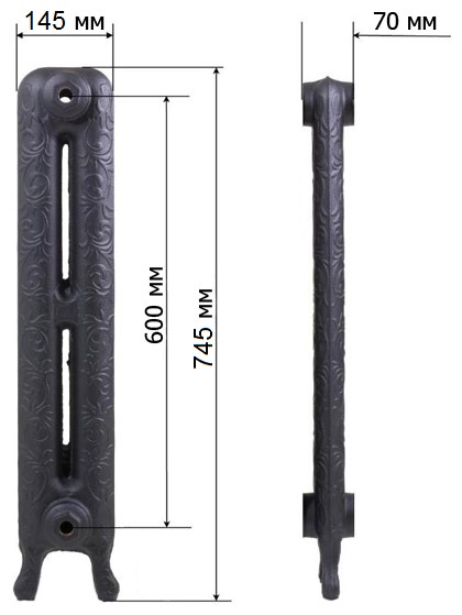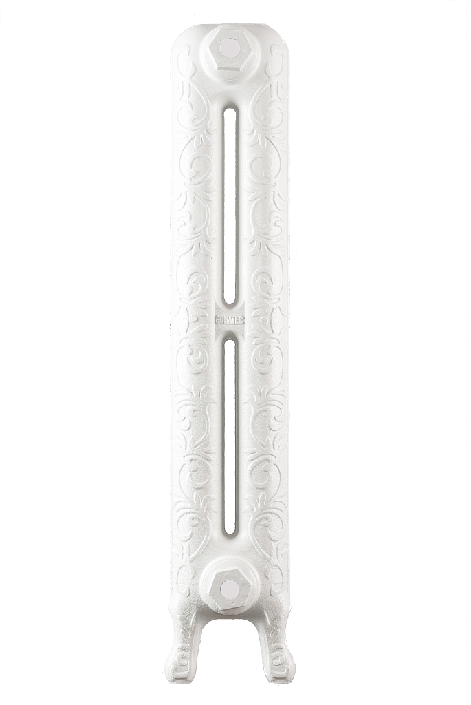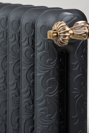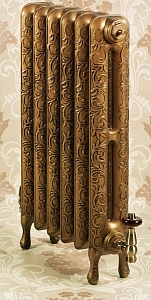 - За счет того, что используется чугун с высоким содержанием углерода, можно говорить о практически бесконечном сроке службы дизайнерской батареи Retro Style Leeds. Он станет украшением помещения и будет легко передавать тепло по всему помещению равномерно. Плюс ко всему, чугун устойчив к перепадам температуры и к коррозийным образованиям, как снаружи, так и внутри радиатора. Средний вес одной секции составляет от 9 до 11,5 килограмм. Для удобства установки и решения стильного момента имеются кованные фигурные ножки в количестве 4 штук на одну секцию, которые не царапают пол, при этом выступают отличной основой для всего радиаторного отопительного корпуса.