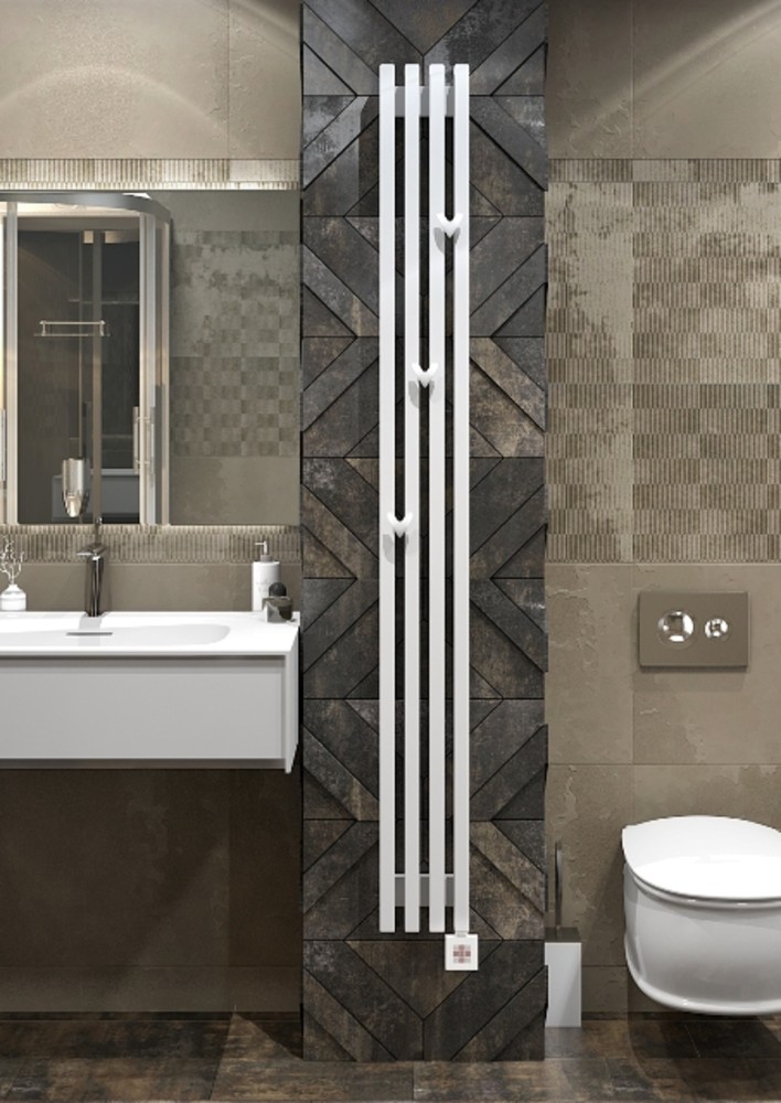 Электрический вертикальный трубчатый радиатор Loten Grey VE из стальной профильной трубы прямоугольного сечения представляет собой последнюю тенденцию в оформлении приборов отопления. Дополнительно может комплектоваться полотенцедержателями для установки в ванную комнату.