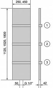 Лицевая поверхность модели "Гросс" изготовлена из окисленной и специальным образом состаренной медной панели. Фактура каждого полотенцесушителя данной модели уникальна и неповторима. Обогрев обеспечивает высокоэффективный медно-алюминиевый теплообменник. Предназначен для систем центрального отопления и ГВС.