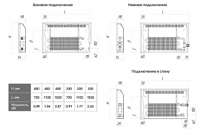 - Межосевое расстояние, мм - 150 (боковое подключение), 50 (нижнее подключение)