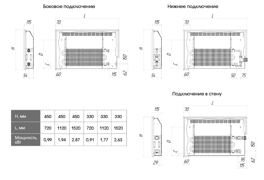 - Межосевое расстояние, мм - 150 (боковое подключение), 50 (нижнее подключение)
