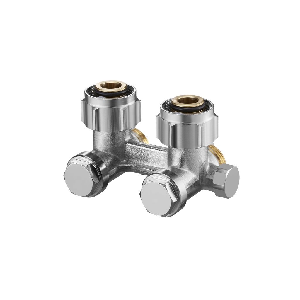 - Угловой запорно-присоединительный узел Multiflex F для двухтрубных систем отопления из латуни, никелированный, мягкое уплотнение.
