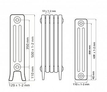 - Все данные размеров радиаторов являются приблизительным, так как в литье допустимы небольшие отклонения, поэтому мы рекомендуем производить вывод и подключение труб только при наличии радиаторов на стройплощадке.