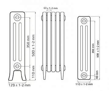 - Все данные размеров радиаторов являются приблизительным, так как в литье допустимы небольшие отклонения, поэтому мы рекомендуем производить вывод и подключение труб только при наличии радиаторов на стройплощадке.
