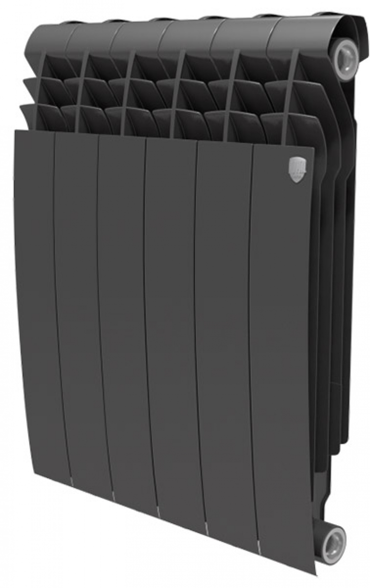 Полностью биметаллический дизайн-радиатор с коллектором из углеродистой стали. Нижние концы ребер расположены по дуге, поэтому холодный воздух эффективно забирается из непрогретых слоев помещения.