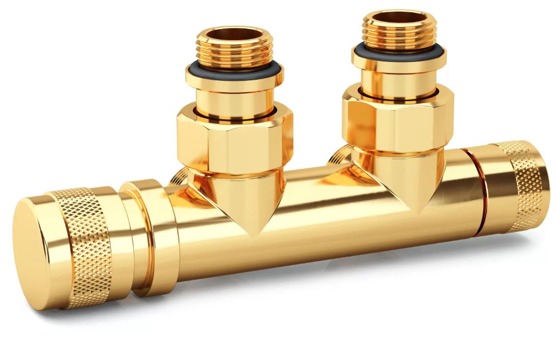 Sr Rubinetterie Узел нижнего подключения угловой 1/2"х3/4"Е Золото (левый)