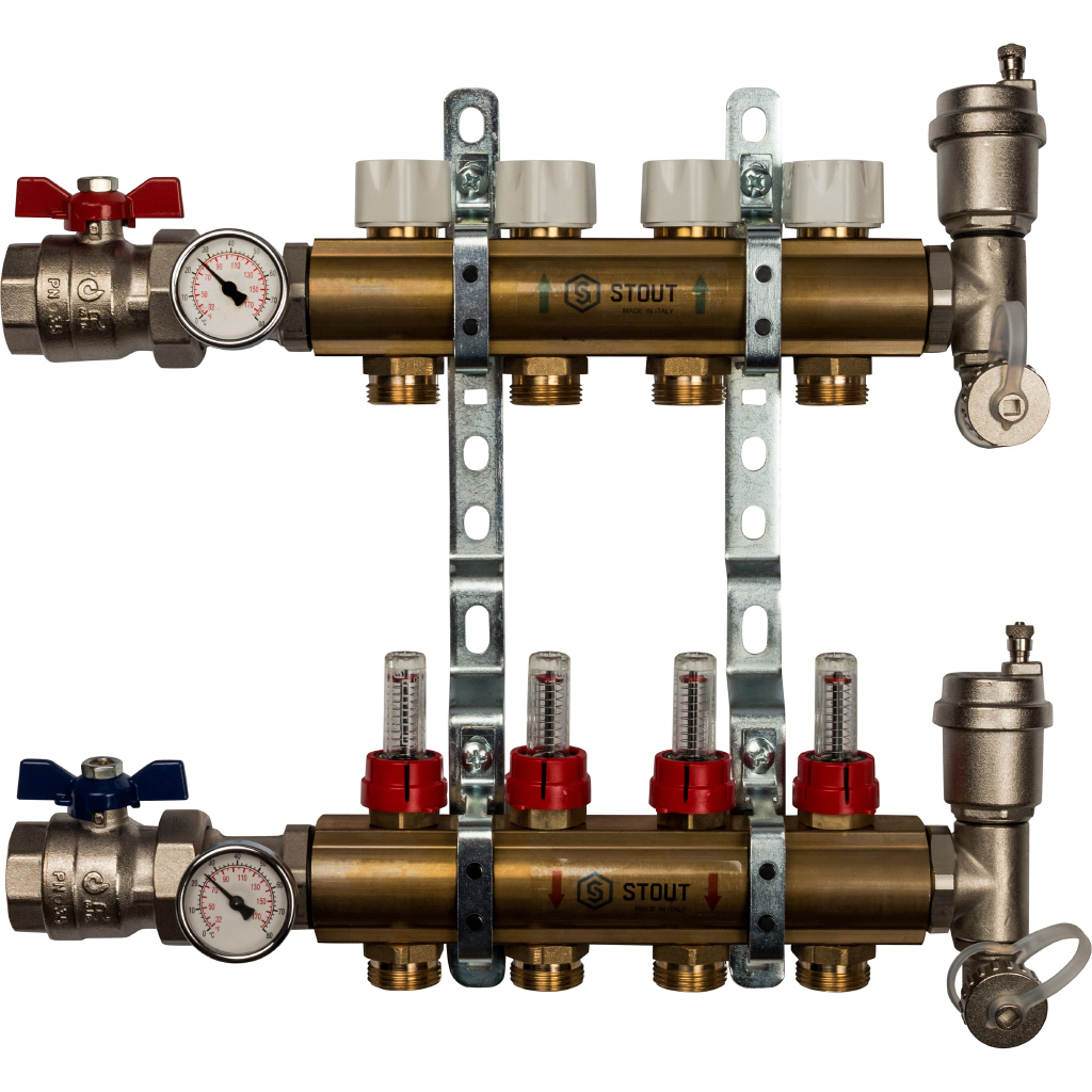 Stout Коллектор регулируемый для теплого пола 4 контура (с расходомерами)