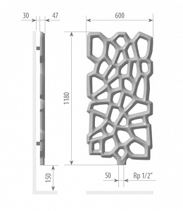 Этот великолепный отопительный прибор, выполненный из полимербетона, представляющий собой смесь минеральных и синтетических материалов. Его форма создана под вдохновением от работ российского математика Вороного. Внутри радиатора вода течет по трубам, изготовленным из нержавеющей стали.