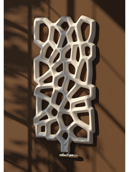 Этот великолепный отопительный прибор, выполненный из полимербетона, представляющий собой смесь минеральных и синтетических материалов. Его форма создана под вдохновением от работ российского математика Вороного. Внутри радиатора вода течет по трубам, изготовленным из нержавеющей стали.