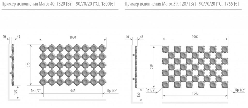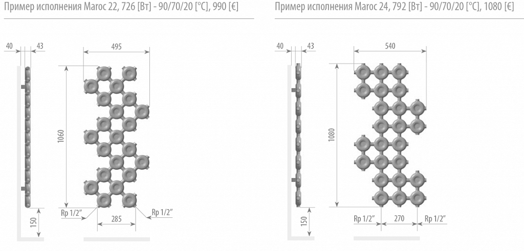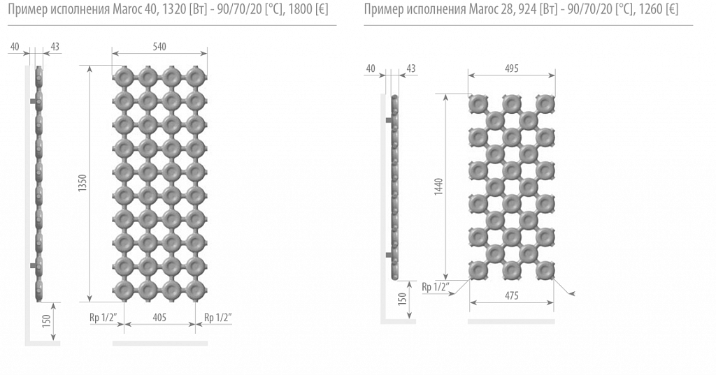 Радиатор «Maroc» может изготавливаться по эскизам заказчика после предоставления исполнительного чертежа компании Varmann.