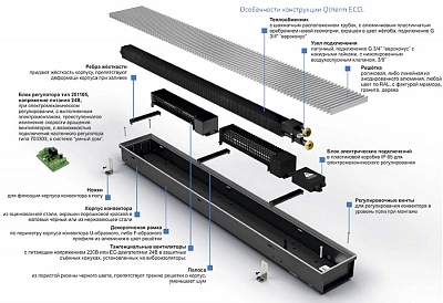Встраиваемый в пол конвектор Qtherm ECO – традиционный конвектор серии Qtherm с тангенциальными вентиляторами. Принципиальные новшества и преимущества конвекторов Qtherm ECO следующие: