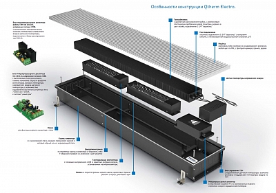 Встраиваемый в пол конвектор Qtherm Electro - это отопительный прибор с принудительной конвекцией, с тангенциальными вентиляторами. Вентиляторы могут быть расположены как о стороны окна, так и помещения. В теплообменнике используются электрические нагревательные элементы. В переходные периоды отопительного сезона конвектор может работать без вентилятора за счет естественной конвекции. Конвектор Qtherm Electro имеет встроенный микропроцессорный регулятор температуры нагревательных элементов с датчиком температуры и скорости вращения вентиляторов, с возможностью работы в "ручном режиме", подключения настенных регуляторов тепловой мощности, подключения к системе "умный дом".