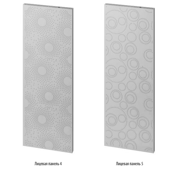Поверхность панели имеет точечную рельефную текстуру с необычными геометрическими узорами пяти видов. Для создания объема, панель и вставка могут быть окрашены в разные цвета.