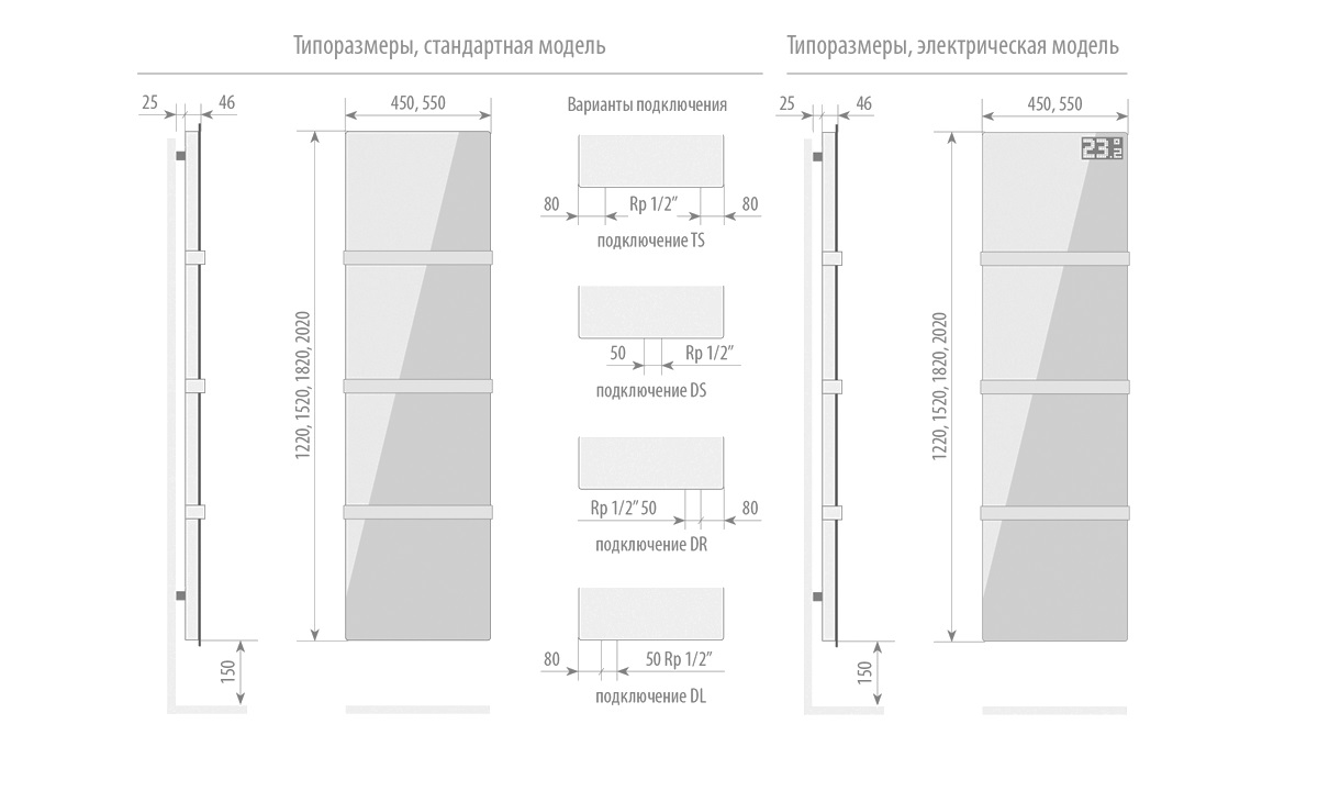Радиатор изготавливается в стандартном водяном исполнении и электрическом. Электрический радиатор «Solido Glass» оснащен микропроцессорным электронным блоком, который плавно управляет теплонагревательными элементами. На лицевой панели отображается информация о текущей работе электрического радиатора.
