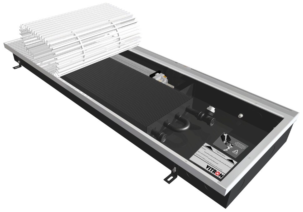 Внутрипольный конвектор с принудительной конвекцией. Применяется в качестве основного отопительного прибора в помещениях с небольшими потребностями в отоплении или вспомогательного отопительного прибора с системами тёплого пола, вентиляции, радиаторного водяного отопления. Может быть установлен как в однотрубную, так и в двухтрубную систему отопления.