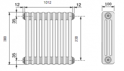 Радиаторы поставляются в собранном виде и оснащены 4-мя резьбовыми заглушками для подающего и обратного трубопровода, а также для микровоздушника и опорожнения. Все грани округлены с Rmin = 2 мм.